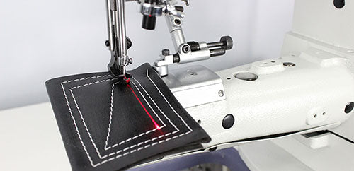 - Compound walking-foot feeding mechanism allows for sewing up to 1/2" thick leather