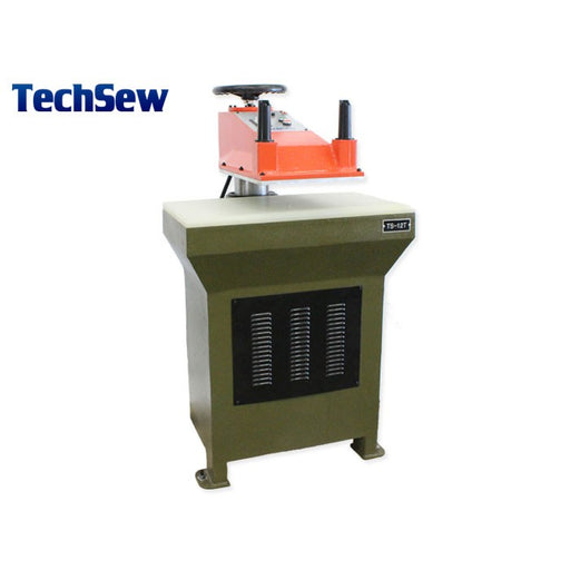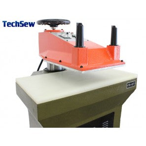 The TechSew TS-12 swing arm hydraulic clicker press is designed for efficient die cutting of leather, vinyl, rubber, plastic, canvas, fabrics and p...