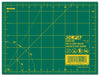6" x 8" green self-healing professional quality rotary mat especially designed for use with OLFA rotary cutters. Convenient size for taking along. Double-sided with yellow guidelines on one side, solid on opposite for general cutting. Rotary mats protect your work area and greatly extend the life of your rotary blades. 1.5mm thick for a variety of applications. Store flat and out of direct sunlight.